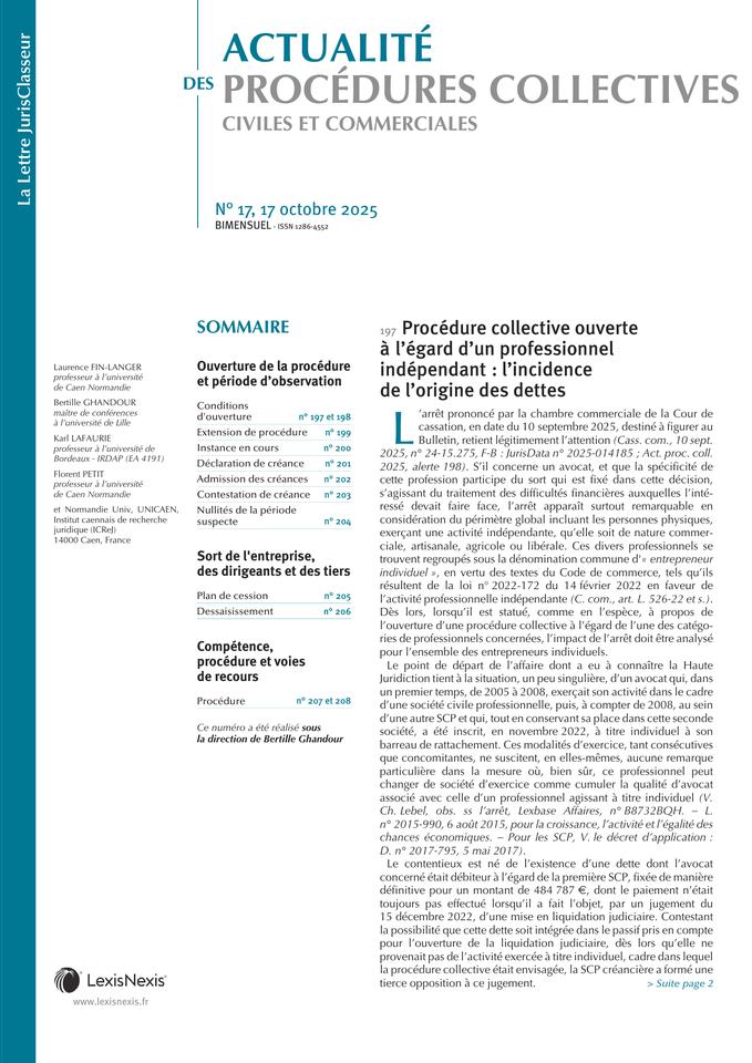 197 Procédure collective ouverte à l’égard d’un professionnel indépendant : l’incidence de l’origine des dettes