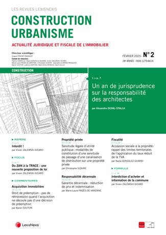 Suivez l’actualité jurisprudentielle et législative en matière de construction, d’urbanisme et de fiscalité immobilière. Les textes et la jurisprudence sélectionnés font l’objet d’un commentaire pratique avec des rattachements