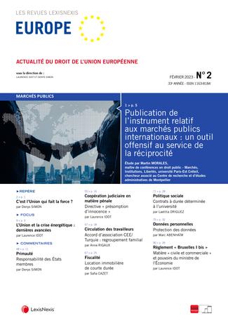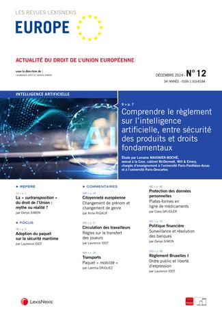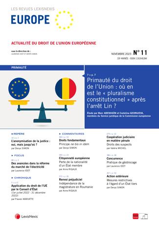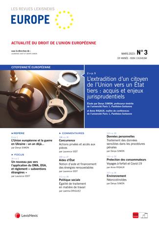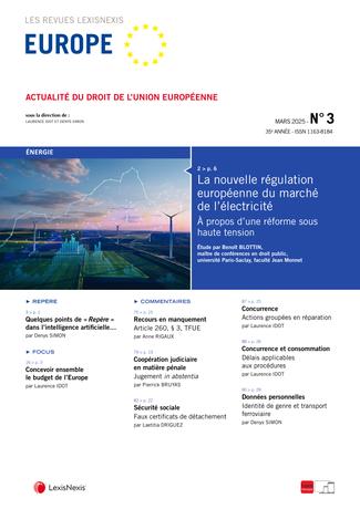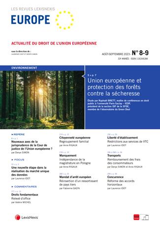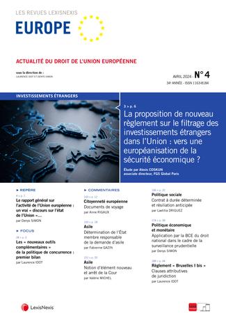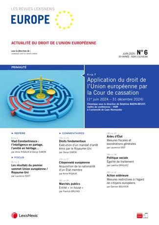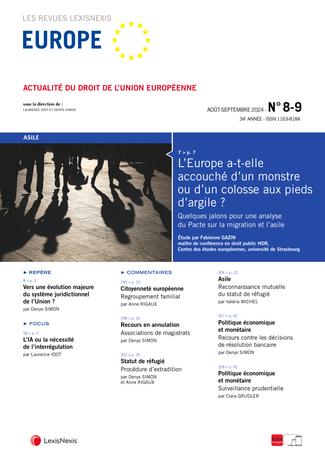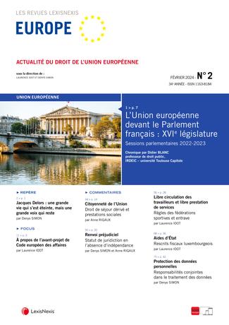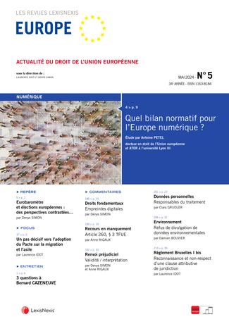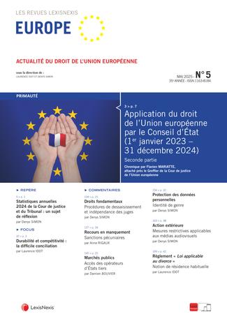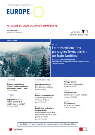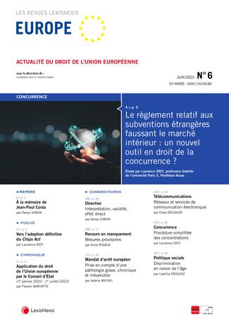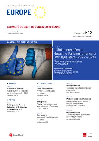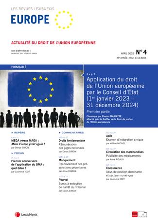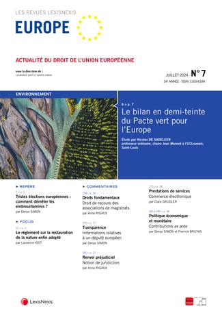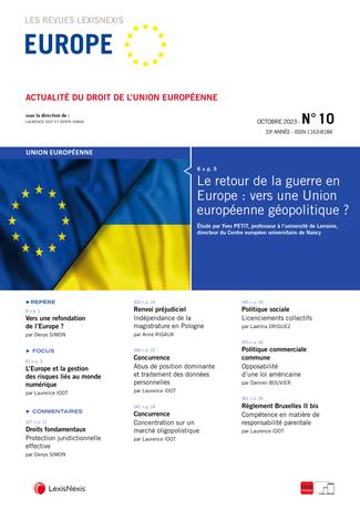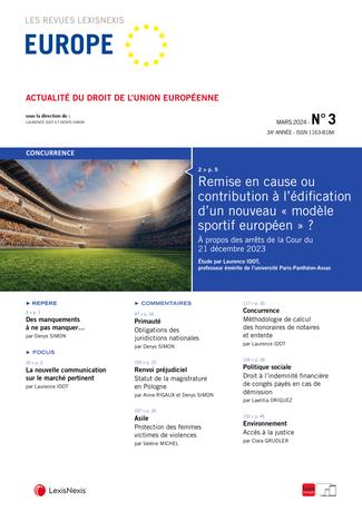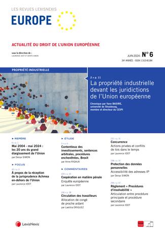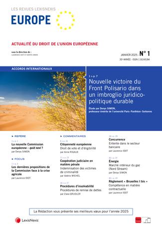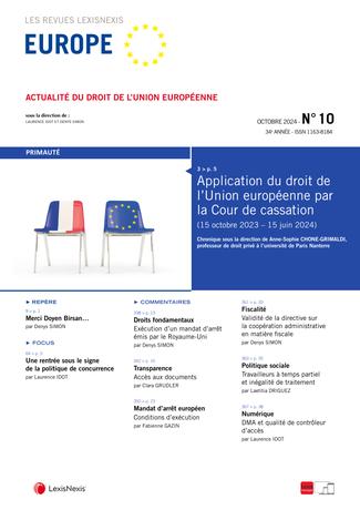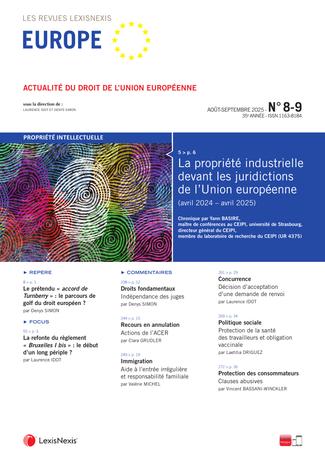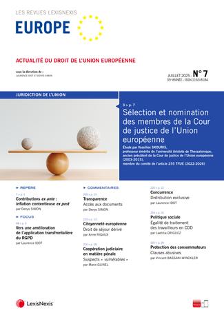 Le mensuel du droit de l’Union européenne L’actualité du droit de l’Union européenne est suivie au plus près à travers des études, analyses des principaux textes adoptés par les institutions de l’Union européenne, de la jurisprudence de la Cour de justice et du Tribunal, et de leurs répercussions au niveau national. Direction scientifique : Laurence Idot et Denys Simon