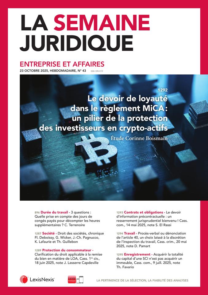 1292 Le devoir de loyauté dans le règlement MiCA : un pilier de la protection des investisseurs en crypto-actifs