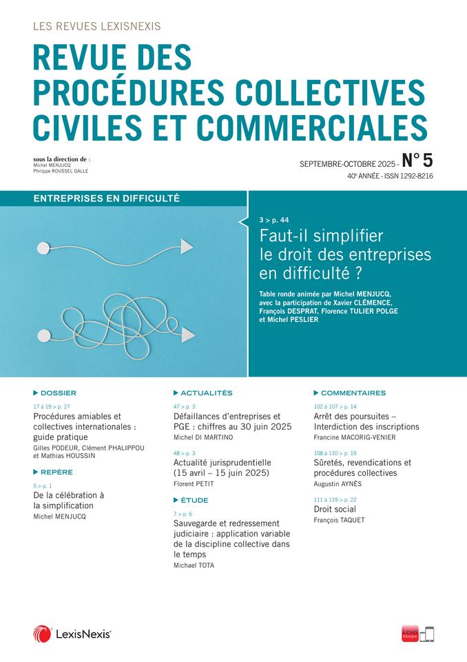 La panoplie des procédures collectives s'est enrichie au fil des réformes à tel point qu'il peut être reproché aujourd'hui au droit des entreprises en difficulté une grande complexité. Et même s'il...