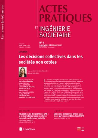 L’aménagement, par anticipation, des conséquences de la nullité apparaît, en droit des sociétés, juridiquement envisageable et même souhaitable en opportunité. Il est, d’une part, permis d’organiser...
