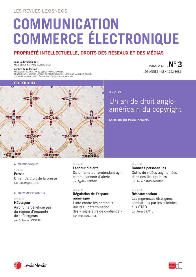 Le mensuel dédié à la propriété intellectuelle, aux droits des réseaux et des médias