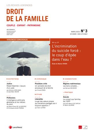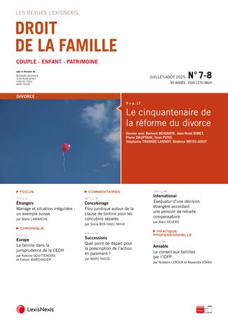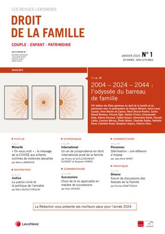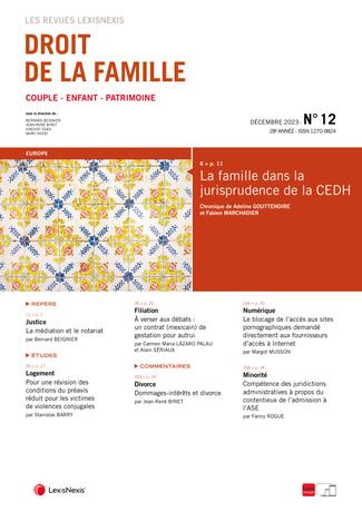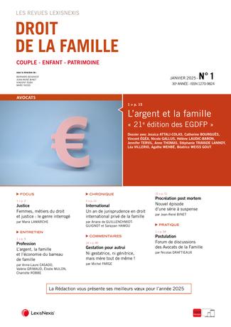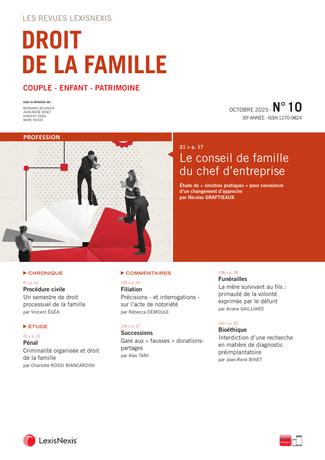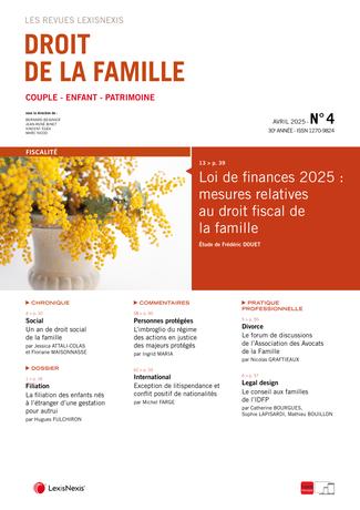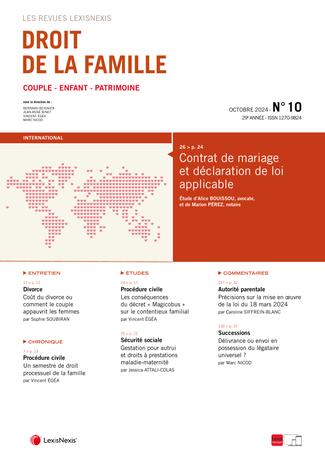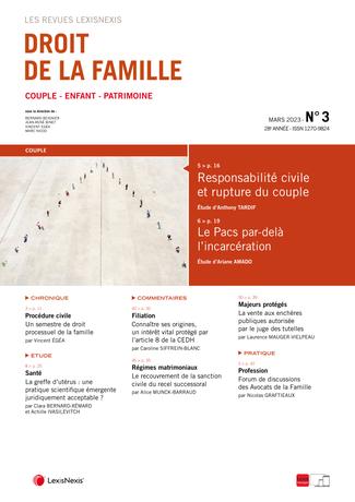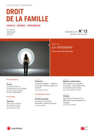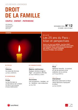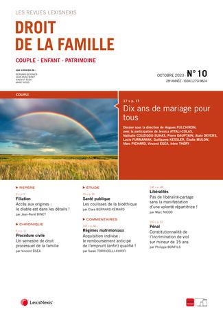 Les décisions les plus récentes dans ce domaine sont traitées à travers les rubriques suivantes : mariage, concubinage, pacte civil de solidarité, divorce, régimes matrimoniaux, successions-libéralités, adoption, filiation, autorité parentale, personnes protégées, en vous apportant l’éclairage du droit fiscal, du droit pénal et du droit international privé.