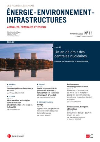 Issue de la fusion de la Revue de droit des transports et de la mobilité, Environnement et développement durable et Revue juridique de l’économie publique, la revue Énergie – Environnement - Infrastructures vous permet d’appréhender les informations juridiques clés dans ces trois domaines.