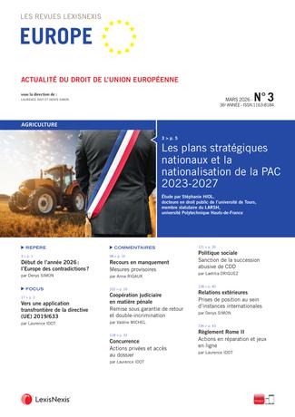 Le mensuel du droit de l’Union européenne L’actualité du droit de l’Union européenne est suivie au plus près à travers des études, analyses des principaux textes adoptés par les institutions de l’Union européenne, de la jurisprudence de la Cour de justice et du Tribunal, et de leurs répercussions au niveau national. Direction scientifique : Laurence Idot et Denys Simon