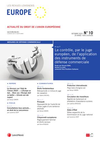 Le mensuel du droit de l’Union européenne L’actualité du droit de l’Union européenne est suivie au plus près à travers des études, analyses des principaux textes adoptés par les institutions de l’Union européenne, de la jurisprudence de la Cour de justice et du Tribunal, et de leurs répercussions au niveau national. Direction scientifique : Laurence Idot et Denys Simon