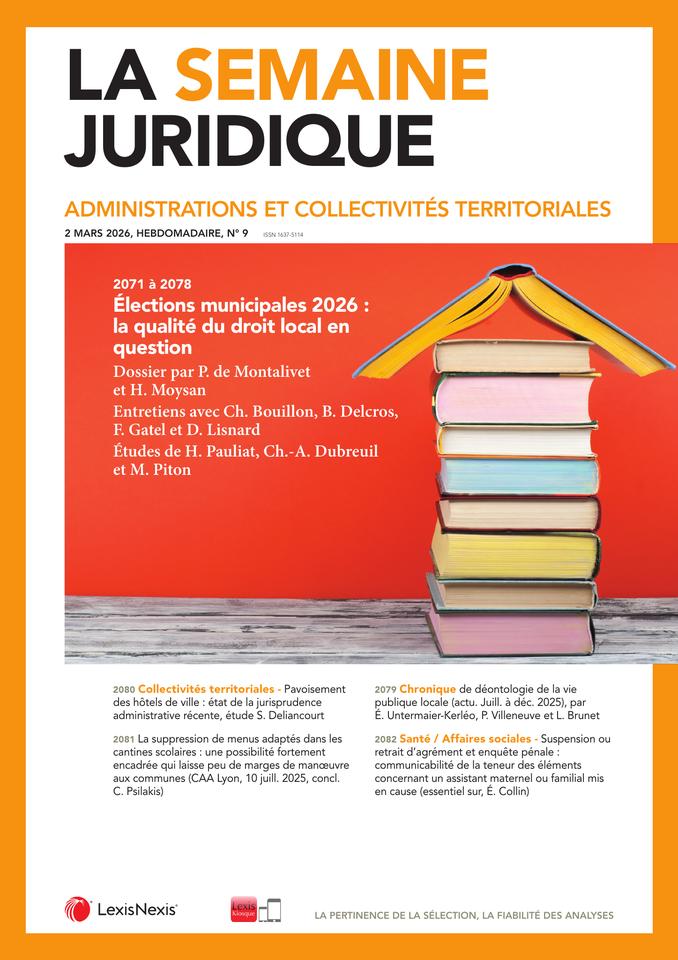 Rubrique rédigée par Lucienne Erstein, conseiller d’État honoraire Mathieu Touzeil-Divina, professeur de droit public à l’université Toulouse Capitole Clemmy Friedrich, magistrat administratif Vivien...