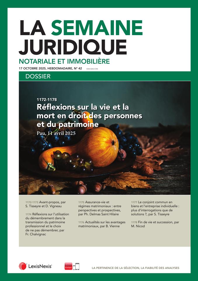 1173 Réflexions sur la vie et la mort en droit des personnes et du patrimoine